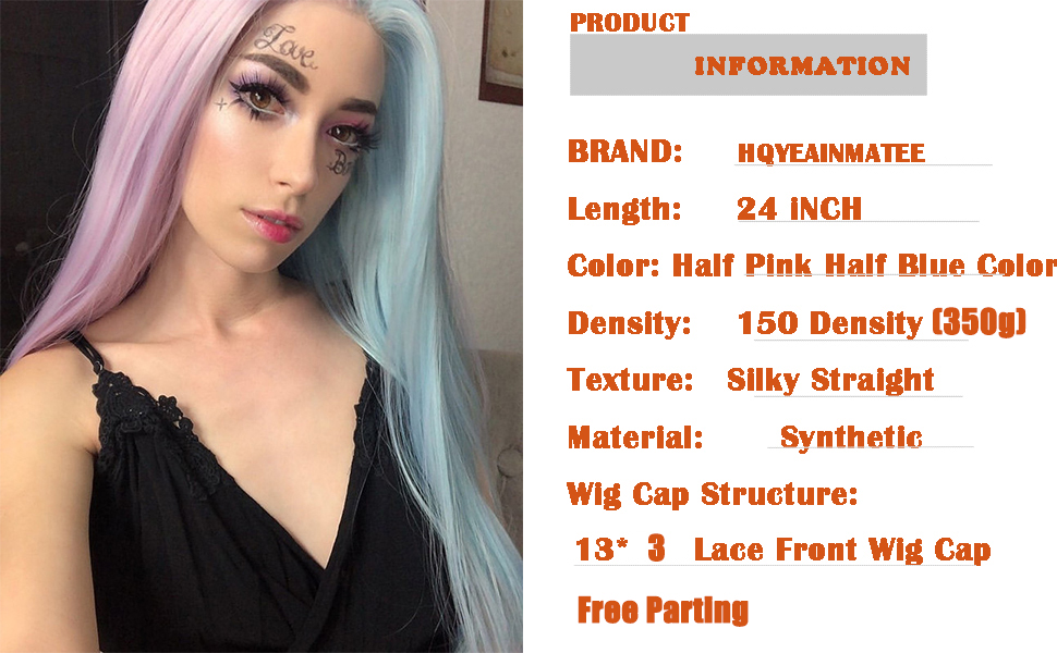 Amazon Com Half Pink Lace Front Wig Half Blue Wigs For Women Long Straight Two Side Colorful Natural Hairline Wig Purple Mix Hot Pink Wig Synthetic Heat Resistant Replacement Hair Free Part